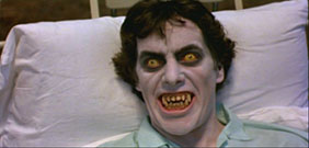 ![]() An American Werewolf in London (1981) Now, werewolves are pretty passé these days, actually downright comical, and I haven't seen proof that anyone can make a decent werewolf movie anymore, case in point both the abysmal Dog Soldiers and the abysmal-er Brotherhood of the Wolf. Yet I continue to be fascinated with werewolves, going so far as to dress up in a "Professor Werewolf" costume one recent Halloween (werewolf makeup, fake fur, tweed coat, pipe, and fake English accent an embarrassing failure of a costume akin to Charlie Brown's multi-eyed ghost). So it was with welcome arms that I borrowed American Werewolf, and a little nervousness that maybe it wouldn't hold up to the indistinct memory of my nerdish, scaredy-cat childhood (and fears that it would affect the sleep of my nerdish, scaredy-cat adulthood). And unlike my pitiful erections, it holds up quite well. From the opening scene on the moors right up to the final carnage in Piccadilly Circus, American Werewolf serves up tension and gore in equal measures, plus a lot of consistently played humor and just enough sex to spice up the character development sequences. Landis really shows his filmmaking strengths throughout the film, confident enough in his abilities to have long stretches of dialogue and very little action, but keep it totally engaging and strangely believable. Unlike with most horror films today, you actually like David (David Naughton), and sympathize with his unpleasant situation. In fact, you pretty much like everyone in the film, even the disagreeable doctor who investigates David's claims about the animal attack that killed his best friend Jack (Griffin Dunne). The only character you don't like gets mercifully beheaded in the climactic sequence, just desserts for being such a by-the-books cop. Of course, by that logic my neighbor who talks on the phone too loud should soon be whisked away to the Dead Zone by a hundred screaming Ring Wraiths. What's great about the movie is its ruthless sensibility, that bad things are better if they happen to good people. A mood of casual violence permeates the film, so that even a scene of David's girlfriend (Jenny Agutter) interacting with some little kids feels like it could end in carnage. The fact that very few scenes actually do end in carnage is beside the point, or maybe it's the point I started to make a few paragraphs back but got a little sidetracked. Then back to Landis' directorial skills. You really can't argue with a film that's more than 90 minutes long and plays like it's less than an hour even with so much dialogue and tension building, American Werewolf moves, like a train heading toward the bloodbath you know has to be coming. And what a satisfying bloodbath. The madness at Piccadilly Circus has to be one of my favorite scenes ever. Scenes of rioting or mass panic cause a deep-seated, skin-crawling dread in me that I can't quite explain, but done well I can't stop watching and have to watch again, like the home movies of my 10th birthday in which my parents took me to a water park and ditched me, then secretly filmed me wandering around in tears to show me later as a joke. American Werewolf takes the cake in the dread and horror department, it takes the fucking cake and smears it all over its furry, blood-soaked torso, which is what I'm gonna do if I ever get the chance to exact my well-deserved birthday revenge. The film also has the distinction of creating two by-now-way-overused horror film conventions: the 'dream-within-a-dream" and the "werewolf transformation sequence." In both cases, American Werewolf plays it faster, more convincing and scarier than any of its descendants. You can’t get much better than Nazi werewolves obliterating a suburban household, or that first groundbreaking, totally freaky transformation scene that set the bar for all future werewolf films. The acting's pretty damn good, too Naughton is appealing and likeable, Agutter is warm and sexy, Dunne is wry and funny (and brilliantly plays his death scene). The strangest thing about American Werewolf is that it marks the beginning and end of Naughton's serious acting career. A performance like his in a movie like this should have led to Bachelor Party and Sleepless in Seattle; Naughton ended up in Hot Dog The Movie and Flying Virus. It's almost tragic how pathetic Naughton's career turned out. The only possible explanations are drugs, bad attitude, or outright stupidity. We do, however, know exactly what happened to Landis: cocaine and Twilight Zone: The Movie. Even ignoring such bad luck, American Werewolf was something of a fluke in Landis' career, which runs the gamut from painfully unfunny (The Blues Brothers) to excruciatingly excruciating (The Blues Brothers 2000). The only films of note on his roster are American Werewolf, Trading Places (and I haven't seen that in a while so I could be wrong) and one of my favorite guilty pleasures, The Three Amigos. Other than that, out of 20-plus films, it's basically all shit. Regardless, you can't take American Werewolf away from him. It's a great movie, very easy on the multiple viewings and truly deserving of respect. Now if we could only convince those Hollywood motherfuckers to film my Teen Wolf sequel script (Teen Wolf 3: Teen Wolf's First Job vs. The Werewolf Terrorist Front) about how the Teen Wolf gets his first job in a stuffy bank and has to save the town rec center from the evil bank president by winning the local golf tournament, and the sub-plot about the werewolf terrorists blowing up banks to protest poor treatment of werewolves well, then pretty much everything in my world would finally be okay. Until then, I shall continue to drink the wolf's bane in hopes that my curse will someday subside.