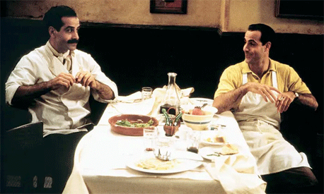 ![]() Big Night (1996) That said, it's definitely a movie you have to be in the mood to watch. There's nothing exciting about Big Night, and you don't want to watch it if you're hungry. Stanley Tucci and Tony Shaloub play Italian brothers whose restaurant is on the verge of failing because customers don't connect with their connoisseur food Shaloub, the artist-chef, refuses to give the people their spaghetti and meatballs. Tucci only wants to make it in America, but can't forge a definite path of action. Their relationship and cross-purposes form the heart of the movie, while tantalizing scenes of glorious, gluttonous food and classic Italian-American songs provide the window dressing. Shaloub is a marvel, Tucci is good, and the support cast is mostly fabulous, especially Ian Holm (Bilbo from Lord of the Rings) as successful businessman Pascal, Isabella Rosellini as Pascal's girlfriend and Tucci's mistress, Marc Anthony as the sheepish kitchen assistant, and Allison Janney as Shaloub's love interest. Minnie Driver is sadly on hand to bring things down a notch, but even she can't sink the ship. As for Campbell Scott, I can't explain it I just don't like the guy. It's a small film, downbeat and low-key, a little sleeper that ought to be better regarded. If you're looking for excitement, you're very much in the wrong place, but for a quiet night in with a good meal, good wine, and good company, Big Night is a tasty main course with no diarrheal reprisals.
