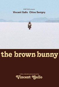 But it was the film's bleak, elegiac tone that left me with an ache I didn't shake for days. The Brown Bunny is as weirdly depressing as Buffalo '66 was weirdly funny, and once the hullaballoo about the infamous blowjob scene dies down, it will be seen as a stunningly private and beautiful work of art albeit one most folks wouldn't want to sit through twice. Gallo stumps fans and critics alike by seeming to be a real jagoff in person, his unbridled ego so off-putting that even if you love his art, you'll have a tough time selling anyone on it. The Brown Bunny is even more divisive and polarizing than Buffalo '66, despite being far less confrontational and not at all subversive. The content frequently obscures the meaning, so people end up talking about the film in purely moral terms, or about its sensational backstory (Roger Ebert, in one of his few-ever genuine zingers, compared the movie unfavorably to his colonoscopy). And it's so utterly different in intent from Buffalo '66 that even Gallo's hardiest supporters will spend much of the movie looking for the "joke." The best approach is to simply encounter The Brown Bunny as you would a painting or sculpture, assigning no prejudice to it based on what you think you know about it or its creator, and certainly ignoring anything good or bad you might have heard about it. The bulk of the film traces Gallo, usually in long, lingering close-up, as he drives from New Jersey to Los Angeles, thinking. Extremely slow scenes in which virtually nothing happens of any apparent meaning are broken up by emotionally ambivalent roadside stops in which Gallo's character (Bud Clay) attempts instantaneous human connection only to abruptly reject it. Gradually, as the windshield wipers and stark soundtrack lull you into what feels like actual road-trip-trance, you become attuned to the state of intense pain you are observing. Gallo mixes extreme self-loathing with profound loss and hopelessness, but shows us only his seemingly blank surface, leaving the viewer to pick up on the submerged emotion only through the tiniest of clues. So what seems like a dispassionate exercise in simply making moviegoers fidget ultimately reveals itself to be a work of such emotional depth that you realize you're not fidgeting, you're trying to hide from it. It's the most accurate and unflinching portrait of grief I've ever seen captured on film. The staggering final sequence punctures the surface to reveal a raw and festering wound, and I'd argue that the extremity to which Gallo pushes it is entirely essential to the story, and it is what gives The Brown Bunny its lasting impact. Without the emotional release (as sloppy and ugly as real life), the film would come off as an induglent shaggy-dog joke, a la Cremaster 3. And while people will undoubtedly continue to focus on the hardcore-sex aspect, the metacontext of that is completely irrelevant. The Brown Bunny is neither important nor lamentable for the fierceness of its final scenes; as a piece of art, it required this kind of naked pain. You may not like it, but it had to be there. It's a brutal film in a lot of ways, not least because it makes you feel bad. But it makes you feel, and I admire that without reserve. I liked Buffalo '66 a lot more, but I sure felt The Brown Bunny.