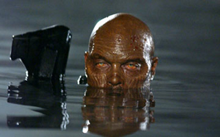 Which is not to say Land of the Dead doesn't provide a lot of both. But the glorious gore is tempered by Romero's exceedingly blatant politicking, which in some ways is admirable, but in many other ways is completely tedious. I'm not sure we need the story of the Bush Jr. administration told via zombie movie. And if Zombie 9/11 was actually called for, a little subtlety would have been appreciated. To his credit, Romero has, at least, provided more blood-n-guts stomach-churn here than in the extremely talky Day of the Dead. The zombies look great, including several funny ones, such as a cheerleader with a huge hole in her cheek, and, for the first time (that I'm aware of, at least), a zombie clown! And there are some terrific gross-out gags, including one scene were a zombie reaches into a dead human's mouth and yanks out some organic goodness on which to feast. However, the storyline is so transparently metaphorical that I felt like my intelligence was being insulted. The zombie plague has now overtaken the land, leaving the well-heeled to set up Utopian communities of pure denial, reflected by ruthless rich guy Dennis Hopper and his skyscraper "Fiddler's Green," where the wealthy can mingle, shop, and live their lives under the pretense that the zombie thing is no real dilemma. Of course, they can't leave the tower and Romero reminds us of this by showing the requisite "bird in a gilded cage" shot twice. Hopper has helped to fund an underground army to stave off the zombies, including upstanding Riley (Simon Baker, who looks like a cross between Jack Wagner and Ryan Seacrest) and loose-cannon Cholo (John Leguizamo, doing his people no good deed by playing a Latino character named "Cholo"). The zombies have just started to learn how to communicate and re-learn their former human talents (firing guns, for example), so Hopper wants the situation contained. He utilizes fireworks to distract the zombies, since zombies can't help but be amazed by fireworks (subtle!). Unfortunately, he alienates Cholo, who decides it's time to take the rich white guy down by stealing a tank-like vehicle Hopper funded and aiming its missiles at the skyscraper from a convenient position in a nearby oil yard (with barrels clearly marked "oil"). As this pseudo-World Trade Center allegory plays out, the zombies advance on the tower as well (passing by egregiously visible "No More War!" posters plastered along the city streets). Riley (the well-meaning representative of "the troops" manages to stop Cholo (a conflated Osama/Saddam), but the rogue terrorist attack becomes moot when the zombies overtake the city. Because, you know, the people are ANGRY about the direction in which this country is headed! Especially the people who have huge holes in their cheeks and whatnot. After a preachy middle act, LOTD delivers a pretty excellent final half hour, when the political message becomes satisfyingly ambiguous, and the action takes over. There are some great zombie moments (if you've ever wanted to see a John Leguizamo zombie, here's your chance personally, I'd like to see that for real) and plenty of bloody body parts flying every which way. Asia Argento is also worth noting in the plus-column, for the hotness factor, if not for the enunciation factor. Land of the Dead may well be George Romero's "ultimate zombie masterpiece" (as I've seen it referred to), but it ain't the insane zombie holocaust I'd have loved to see. It's much more like reading the zombie New Republic.