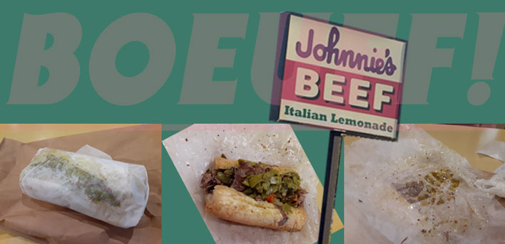 "Best beef" is one of the perennial debates among Chicagoans. Is it the original Italian beef sandwich from Al's on Taylor? The off-menu "superbeef" at The Boeuf Trough in North South Cicero? Or the famous beef between "Southside" Joe Basso and Joe "Skinnypecker" Siemanskiew that led to the unfortunate slaughter of 31 innocent illegals in a stockyard refrigerator car way back in 1981? Johnnie's is routinely mentioned among the very best, although it's usually the Elmwood Park location. The Arlington Heights location is a little more convenient because they have seating, they take credit cards, and they're closer to my Buffalo Grove percoset supplier, Jurek. As for the beef, you know it's legit because on any given visit most of the people milling around look like they're getting a "fix." Not to the extent of the people who mill around near Jurek's apartment, but the vibe is similar. You'll see people literally walking in as though being drawn by a tractor beam. I get mine with sweet and hot peppers, and dipped, which here they call "juicy." $6.55 is what it set me back on this most recent visit. A fucking fair sight more reasonable than $15 a perc from fuckin' Jurek, I'll say that much!
