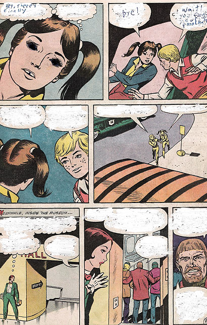 After I finally lost interest in finishing the comic (contributing to a legacy of ambitious unfinished projects that sadly characterizes my work to this day), my younger brother took over, whiting out several more pages, but curiously only actually writing on the last one. The next few are mostly blank but are included for continuity.