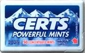 ![]() Certs Powerful Mints Certs Powerful Mints were probably the first Smint ripoff, but they do not provide nearly the feeling of confidence and self-esteem offered by the originator. A similar but less appealing dispenser houses tiny, bland mints with a medicinal aftertaste. Certainly, these should be no one's first choice when clearing the palette, unless your kissing partner is a corpse, or has exceedingly low standards.