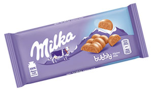 As a big, big fan of the long-forgotten American Choco-Lite bar and its European equivalent Aero, I'm sure I would have immediately snapped up a Milka Bubbly had I randomly encountered it at the grocery store. What's not to like about chocolate filled with bubbles? It's like a champagne dream without having to waste any of your remaining caviar wishes! Say, was Robin Leach always a djin, or did he only become one in death?