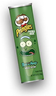 "Rick & Morty" is apparently very funny. Everyone keeps telling me so. And "Pickle Rick" was classic. Everyone keeps telling me so. Cool. You all go ahead and keep on lovin' it. It ain't for me. But I will goddamn right help myself to some of these "Rick & Morty" Pringles! Flavor-wise, I'm not picking up much, if any, difference between these and regular Pringles Dill Pickle, which to me sits right next to its brother Pringles Salt & Vinegar on the dual throne of sour and salty snacks. But if it's a simple re-branding of the same product, it wouldn't be alone in Pringles history. Anyone else remember Pringles The Hogan Family, which was just Sour Cream & Onion in a brief new guise? What about Pringles Andy Sipowicz's Dead Fish, which was given away as a red-carpet exclusive at the "NYPD Blue" Season 7 premiere party? That was just Pringles Trout Dip. If Pringles decides to continue with the TV tie-ins, you know what I'd really like? Pringles Full Monty, to be released along with a FULL reboot of "Monty," the 1994 Henry Winkler series. Come on, Pringles, let's make this thing happen already!