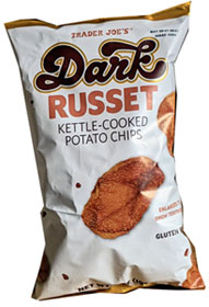 ![]() Trader Joe's® Dark Russet Kettle-Cooked Potato Chips The typography certainly pops on the bag, although I can't be the only person to detect a "blaxploitation" vibe, which, if intentional, is both pretty funny and very troublesome. Then again, I am the kind of person who judges snacks (and people) by the color of their skin, so this entire line of thinking may well just be within my own mind. Ehhh, who the fuck cares? I rarely brave actually going into a Trader Joe's again, this is mostly based on the skin color of its customers and indeed the only time I find myself there is if I've heard about a specific Trader Joe's®-brand item, or, on very infrequent occasions, to experience for myself what "dumb money" smells like. As to the specific Trader Joe's®-brand item that brought me there recently, it was these Dark Russet potato chips since I'm on a newfound kick to try as many different dark russet potato chips as I can. So far, it's just these and Cape Cod Dark Russets which you can get in some grocery stores that allow more than one race. Compared to those delicious Cape Coddin' crunchers, these are significantly less thick, less crunchy, and less dark