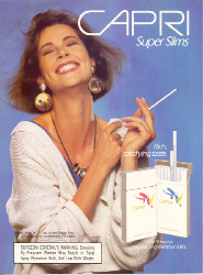 Perhaps the most hilarious cigarettes you can smoke, Capris are the smoking equivalent of wearing parachute pants. Like a bad-taste Tardis, they transport you straight back to 1987 to hobnob with that era's version of the "Sex and the City" girls. Hm, what improbable Dr. Who might find himself in such a situation? Wait, maybe I'm just confusing "Dr. Who" with "Quantum Leap." Ah shit, that's probably why I was kicked out of the last Nerdcon. Anyway, these are the original superslims, though Virginia Slims beat them hands down at their own game. So who still smokes these, anyway? According to the now-defunct Isle of Capri fan site: Jenny McCarthy, Asia Carrera, Traci Lords, Shannon Tweed, Catherine Deneuve, Sandra Bernhard, and Yoko Ono. And now that I'm in the mix, I think we have the makings of an orgy for the ages.