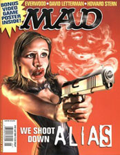 looking at it objectively, what it really is, is totally broad satire pandering to the lowest possible common denominator. Mad #441 skewers "Alias" ("Ailing-Us") and "Everwood" ("Everwooden"), two shows I have never seen, and these bear a recognizable stamp from my days as a Mad reader. "Spy Vs. Spy" and the "Fold-In" are still there. Ol' Sergio Aragones takes a look at bowling. "Mad Deconstructs TV Talk Shows" is not too far off from the commentary of old; same with a feature that differentiates comedy, drama, and reality TV shows based on various scenarios ("It's a comedy