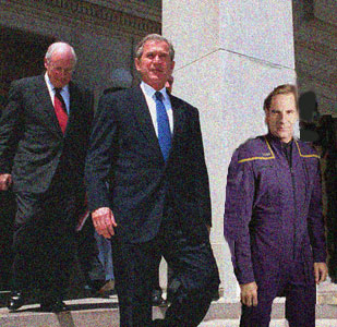 U.S. President George W. Bush acknowledged Bakula's offer in a press conference held Sunday afternoon. "If anyone can heal this grieving nation, it's Dr. Samuel Beckett from 'Quantum Leap'. Oh boy!" |