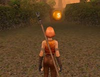 The game starts out as a very typical fantasy-based third-person adventure, a la the Tomb Raider series. You get a fairly lengthy cutscene at the beginning, introducing our heroine Skye, of course and getting the obligatory backstory out of the way. She's bored with her life as a "dwentil" herder, wants some excitement, blah blah blah, her dwentil runs away, she chases it and then the weirdness begins.